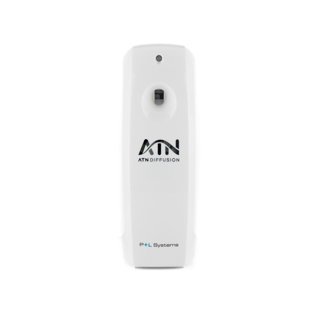 Diffuseur autonome programmable, adapté à notre gamme d’aérosols, d’une contenance de 250 ml, comprenant divers parfums, un désinfectant et un insecticide parfumé.
